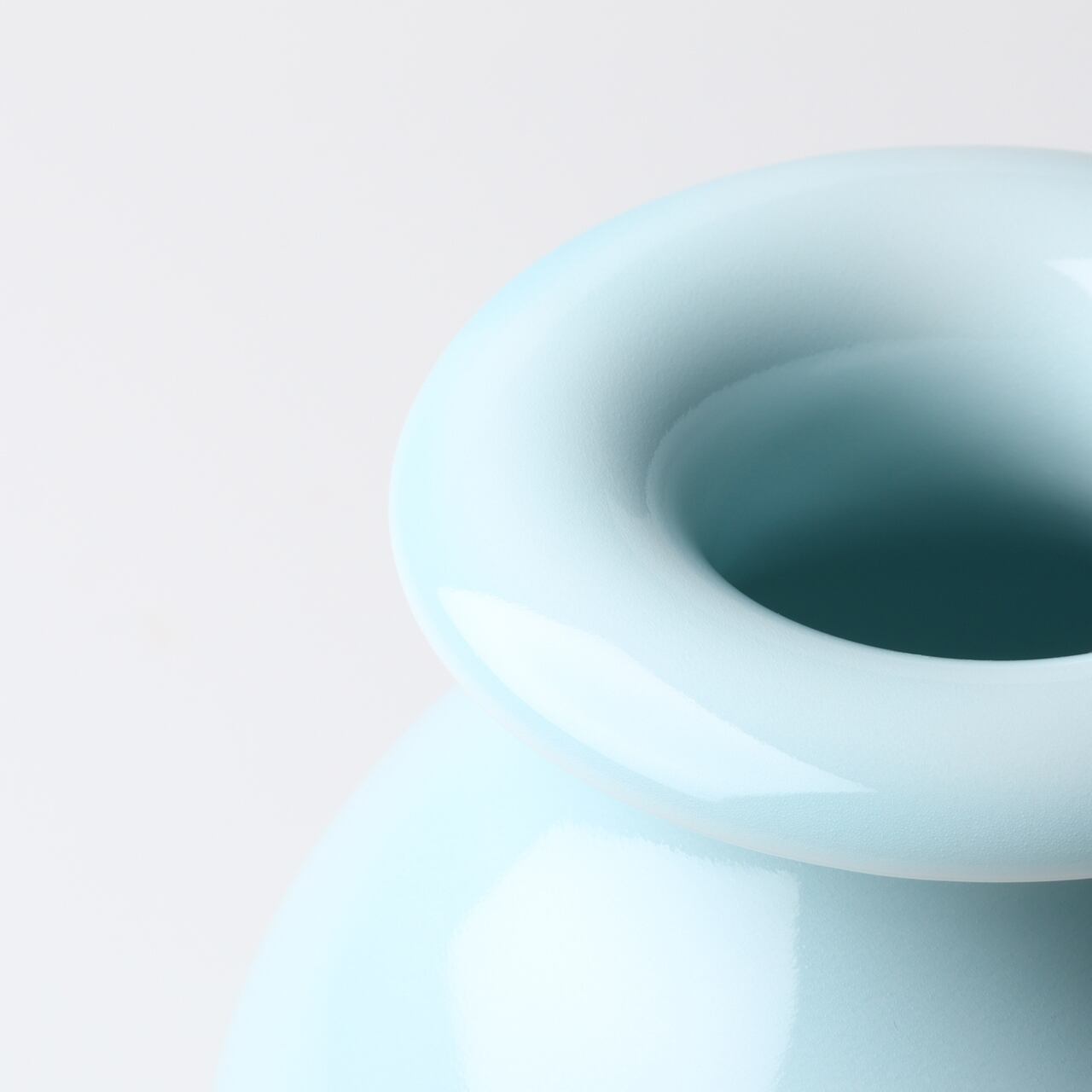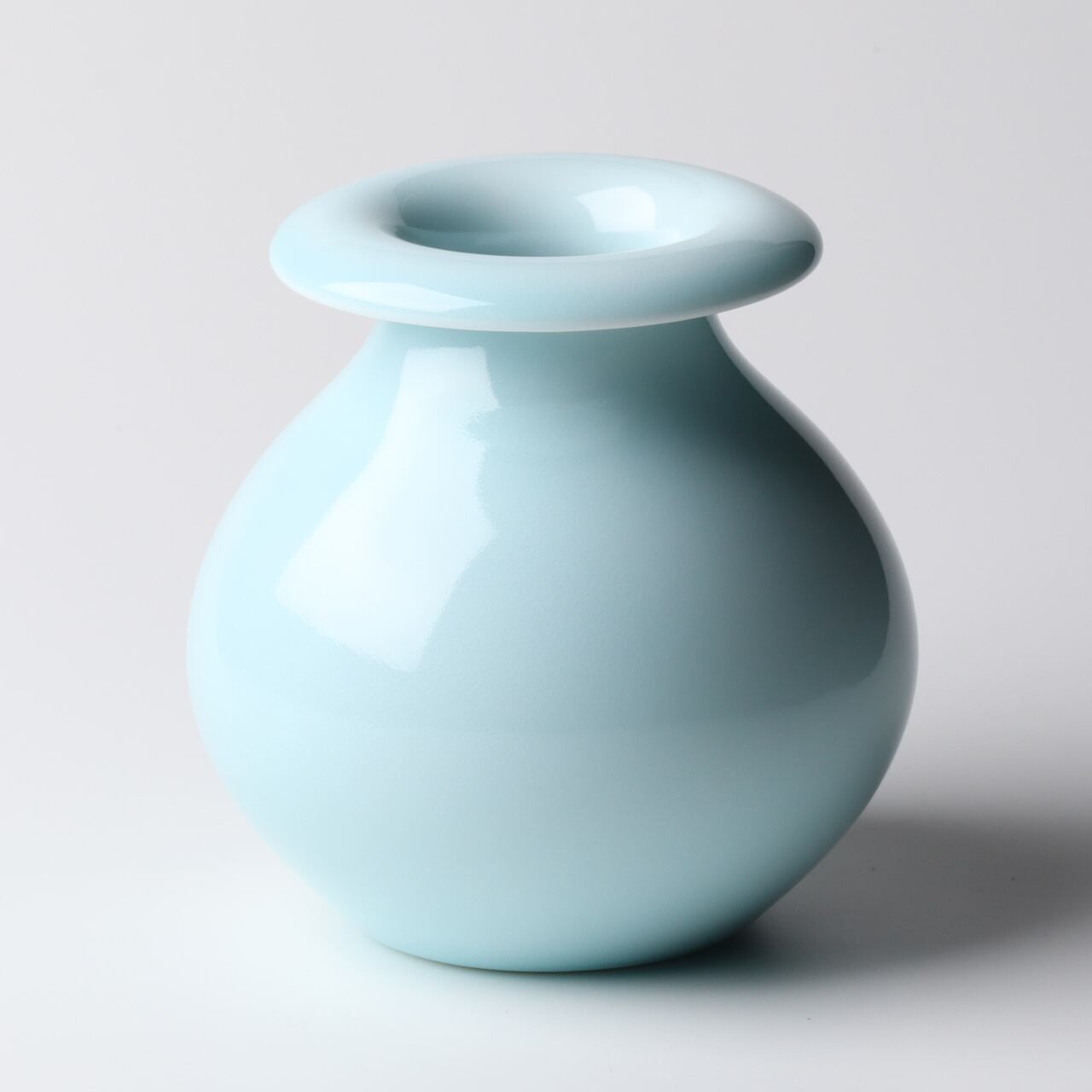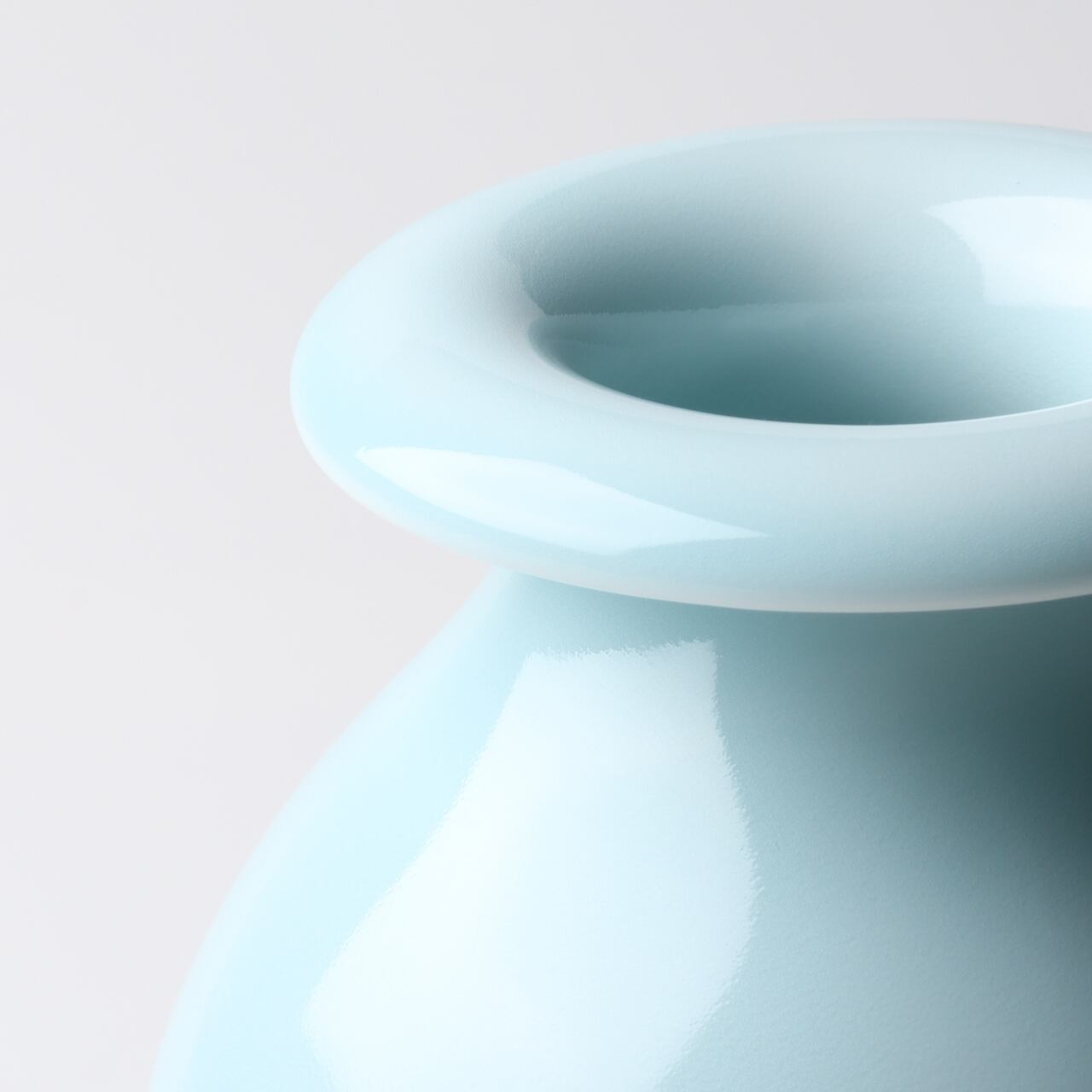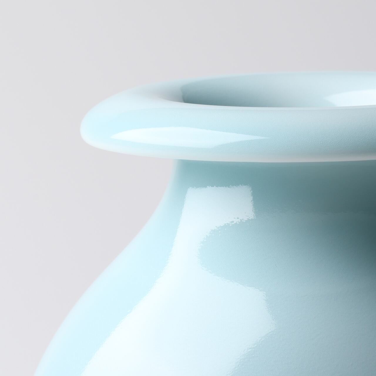 青磁の色がやさしく、磁器では珍しい口周りが外側に曲がって、とてもユニークな形のお花入れです。丈高く、または小さな小花でも挿して楽しんでいただけるお花入れです。お部屋に玄関先に飾って皆様を楽しい笑顔にしてくれそうな作品です。