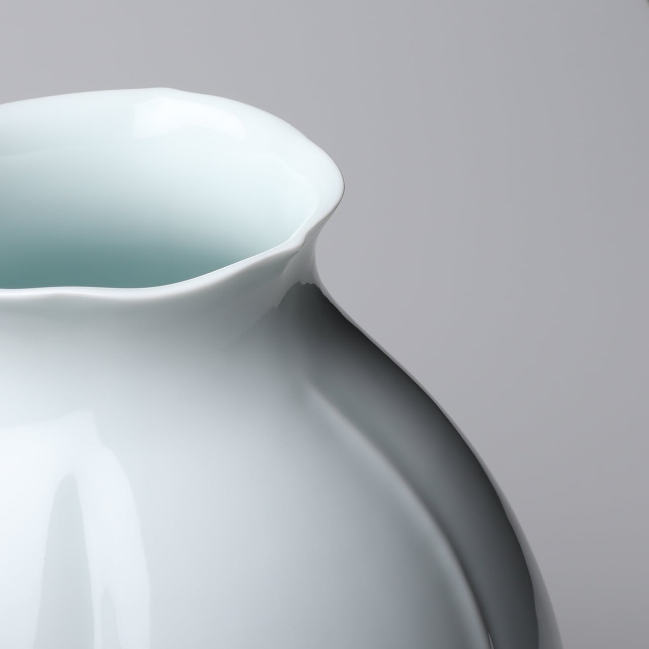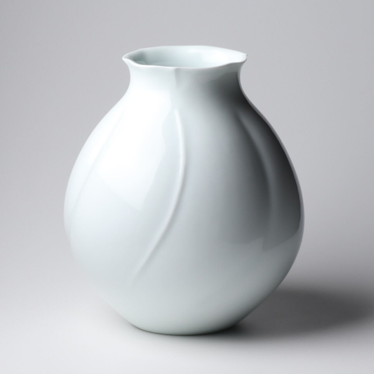 やわらかな花びらを思い描き蕾から今まさに花開こうとしているその瞬間を現した作品です。そのまま飾りとして置かれてもお部屋の雰囲気が華やかなものになりますが、口径を広く取っていますので、季節のお花を活けて楽しんでいただくことも出来るかと思います。