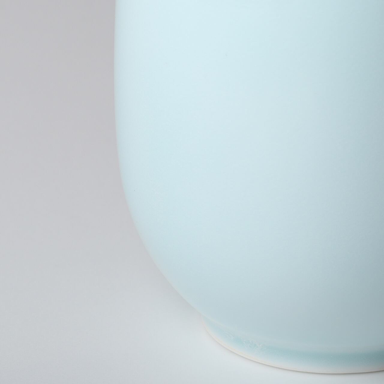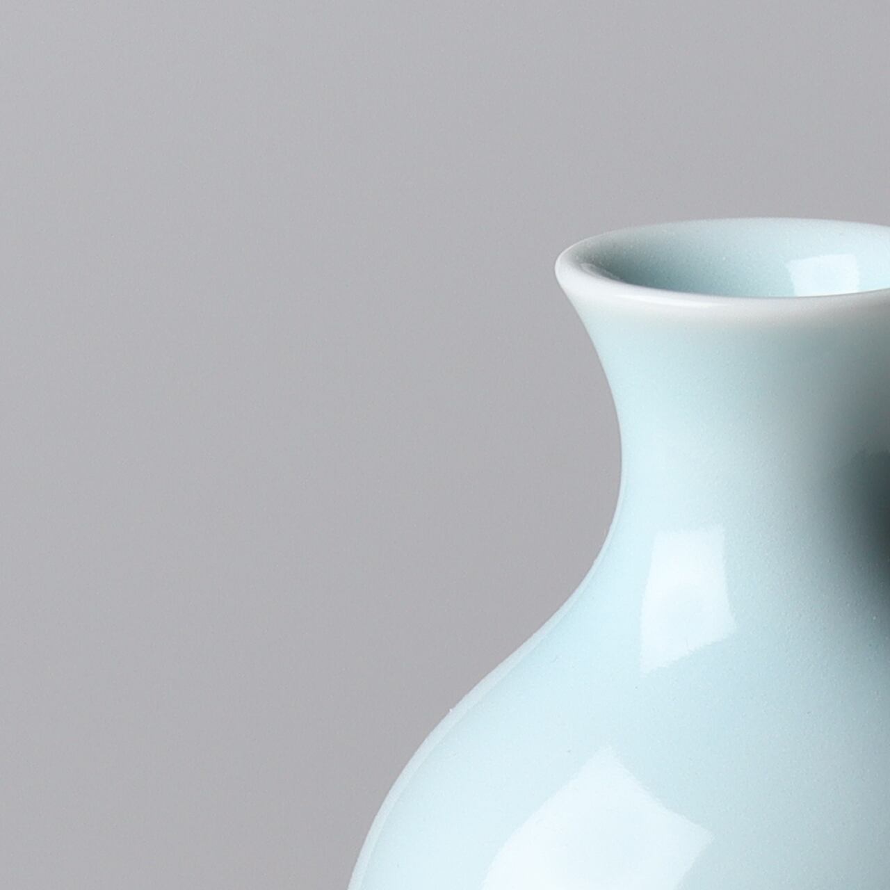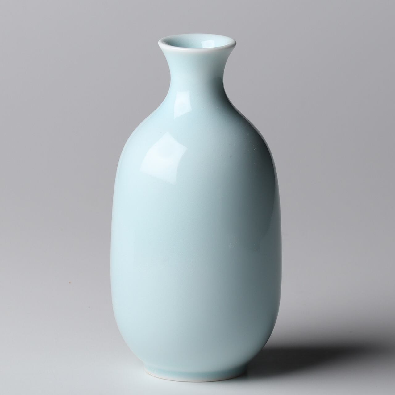 シンプルですっきりした形の青磁のお花入れ。お部屋の片隅や卓上の上にさりげなく置いて存在感がある作品です。やわらかな青磁釉が掛かったお花入れはお花の色も映えさせて楽しんでいただける作品です。 サイズ 直径 7cm x 高 15cm