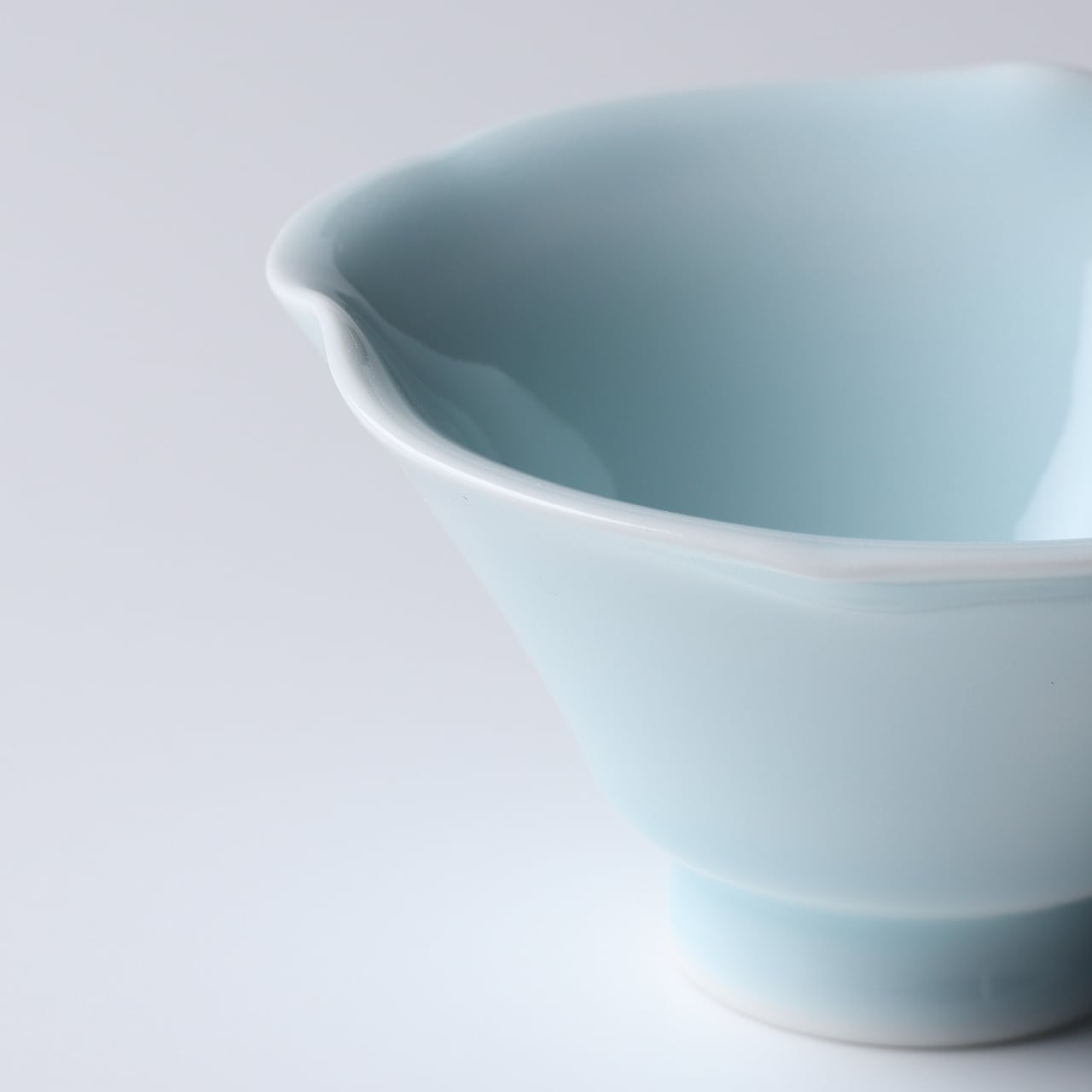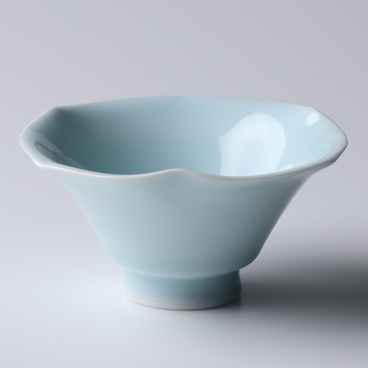 花びらが開き始めた様子を表現した作品で、淡い青磁の色もやさしく、食卓にお花が咲いているような気持になります。 サイズ 直径 9.8cm x 高さ 5cm
