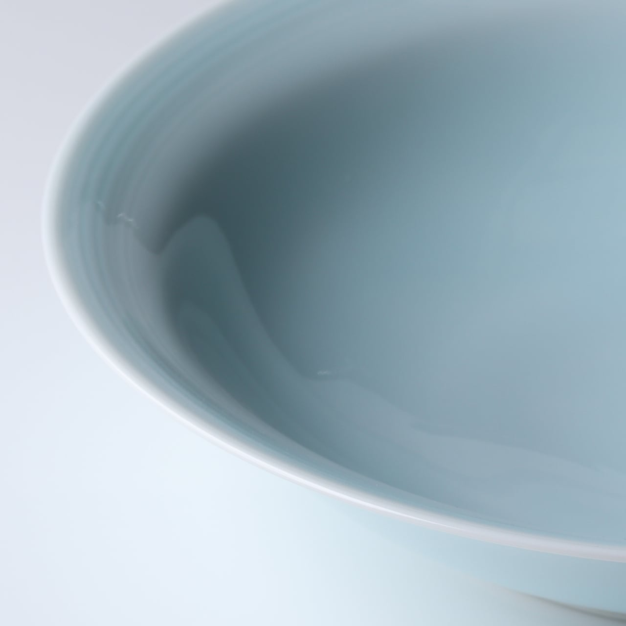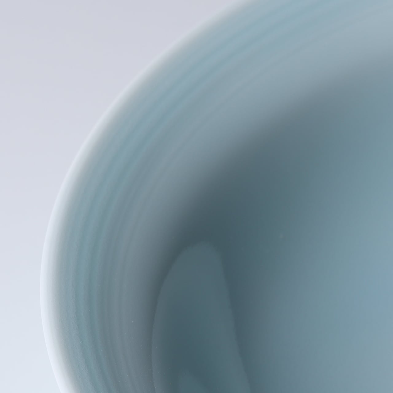 青磁の釉薬の色がとてもよく出ている美しいお皿です。深みもありますからスープなどいれても楽しんで頂けるかと思います。 サイズ 直径 23.7cm x 高さ 5.2cm