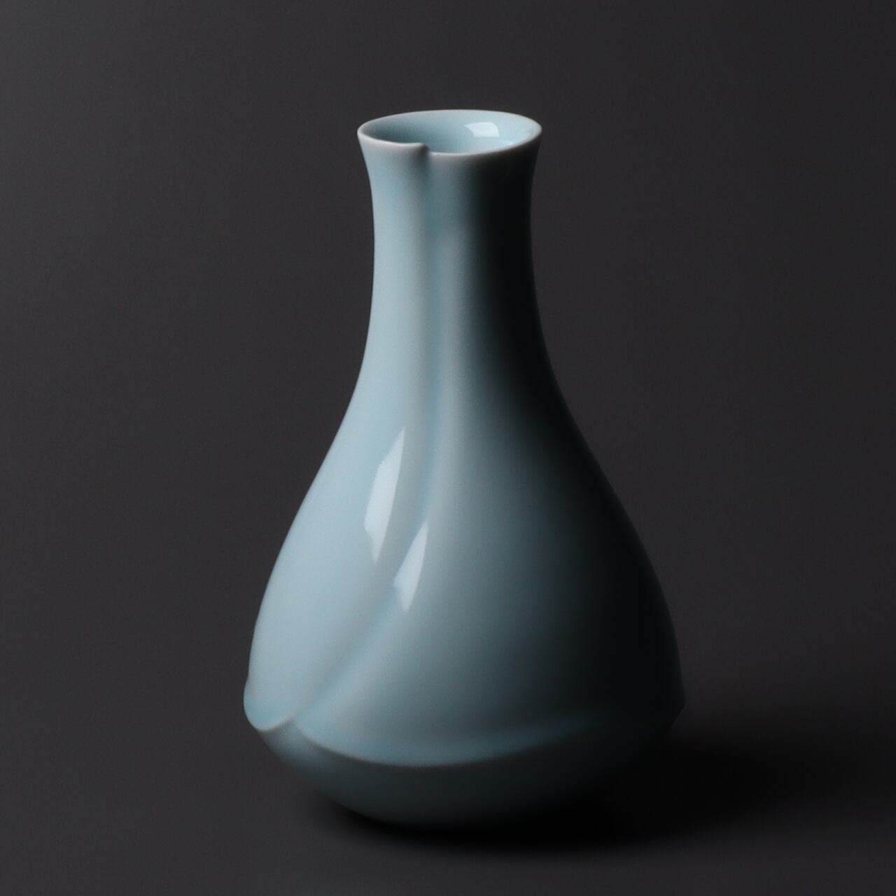 裾に向かってやわらかな膨らみがあり、ドレスをまとったようなお洒落な花瓶です。釉薬の色も淡くやさしい色に出来上がっています。安定感もあり、お花も活けやすい形の花瓶です。