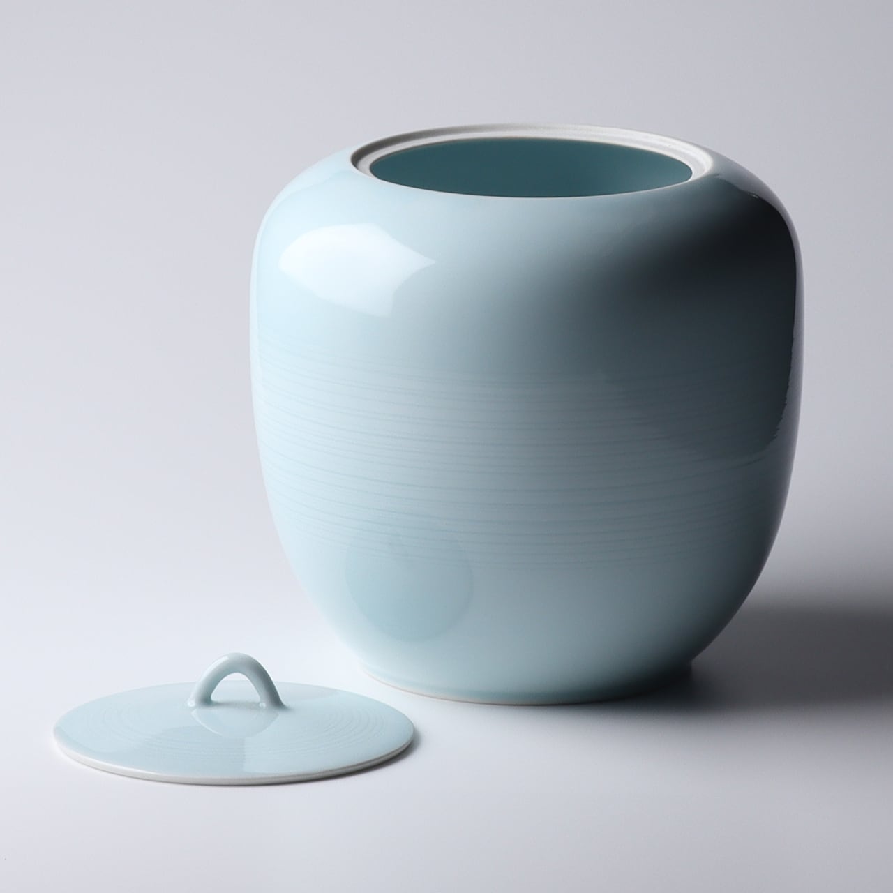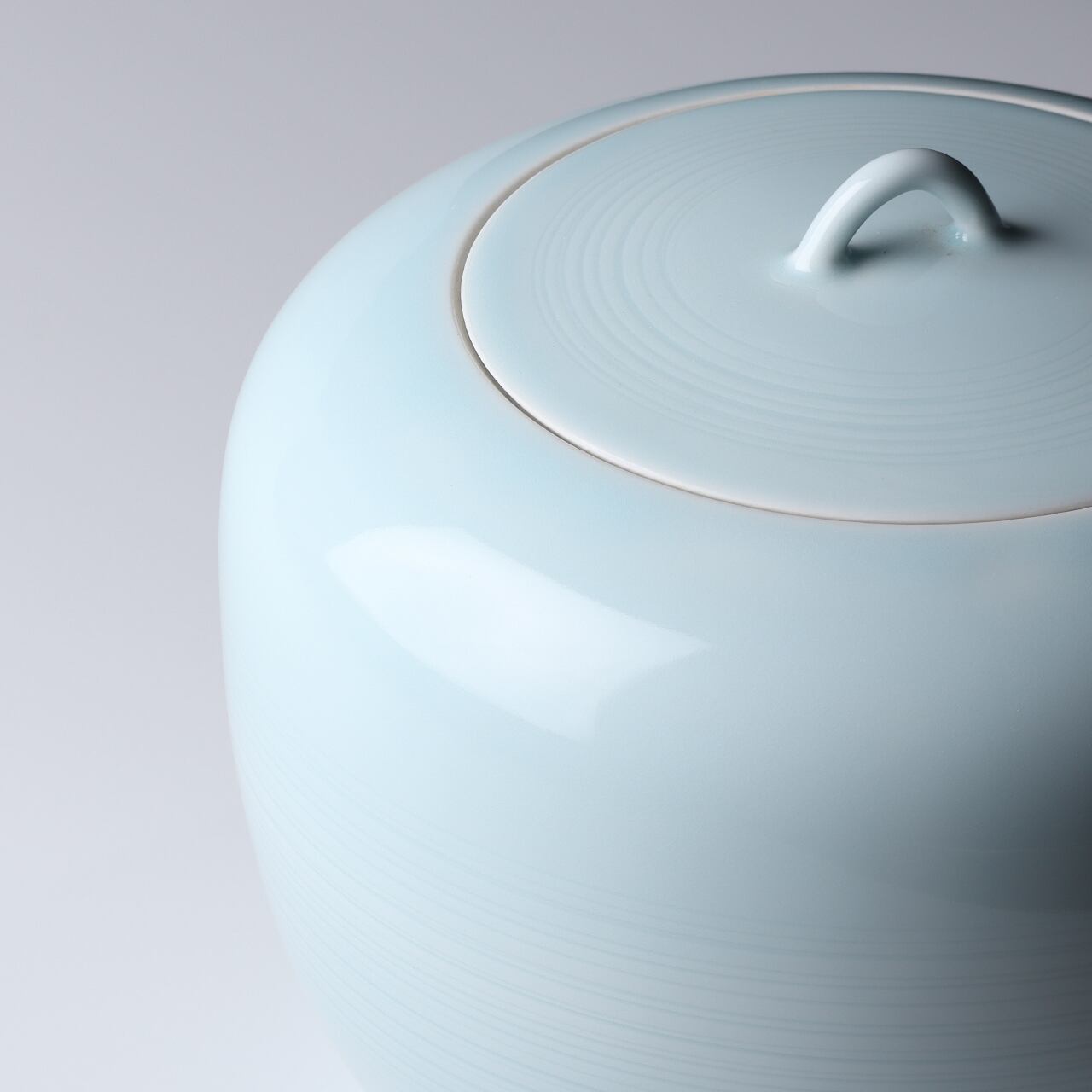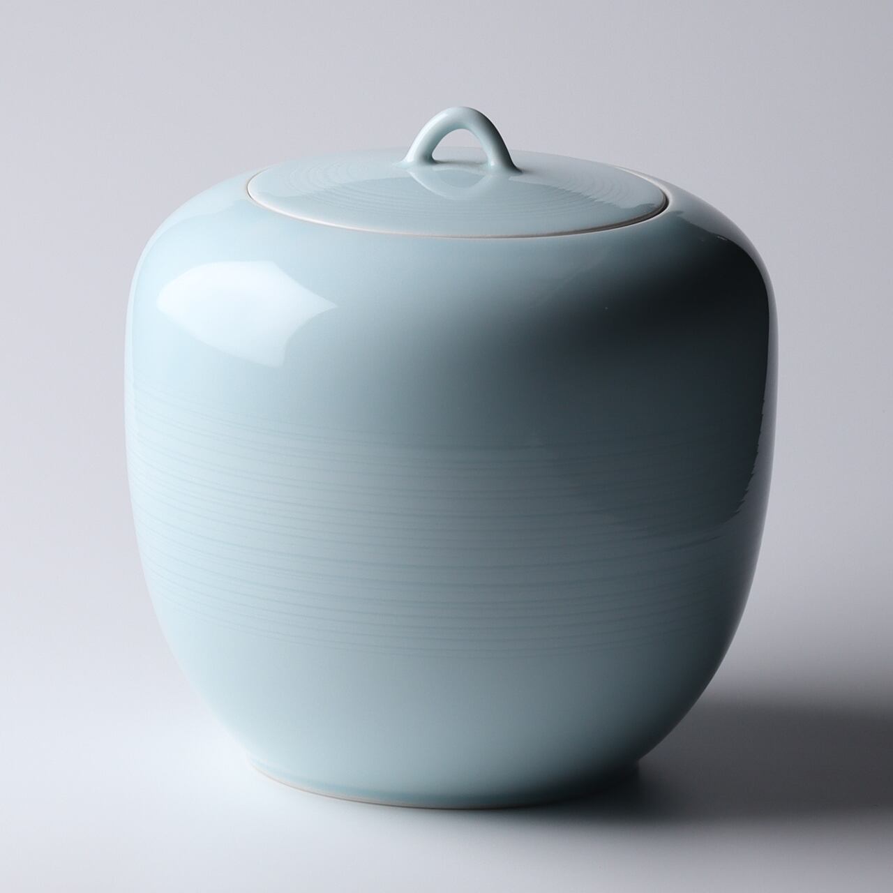 やわらかな青磁釉薬が掛かり、作品がより美しく上品な作品になりました。