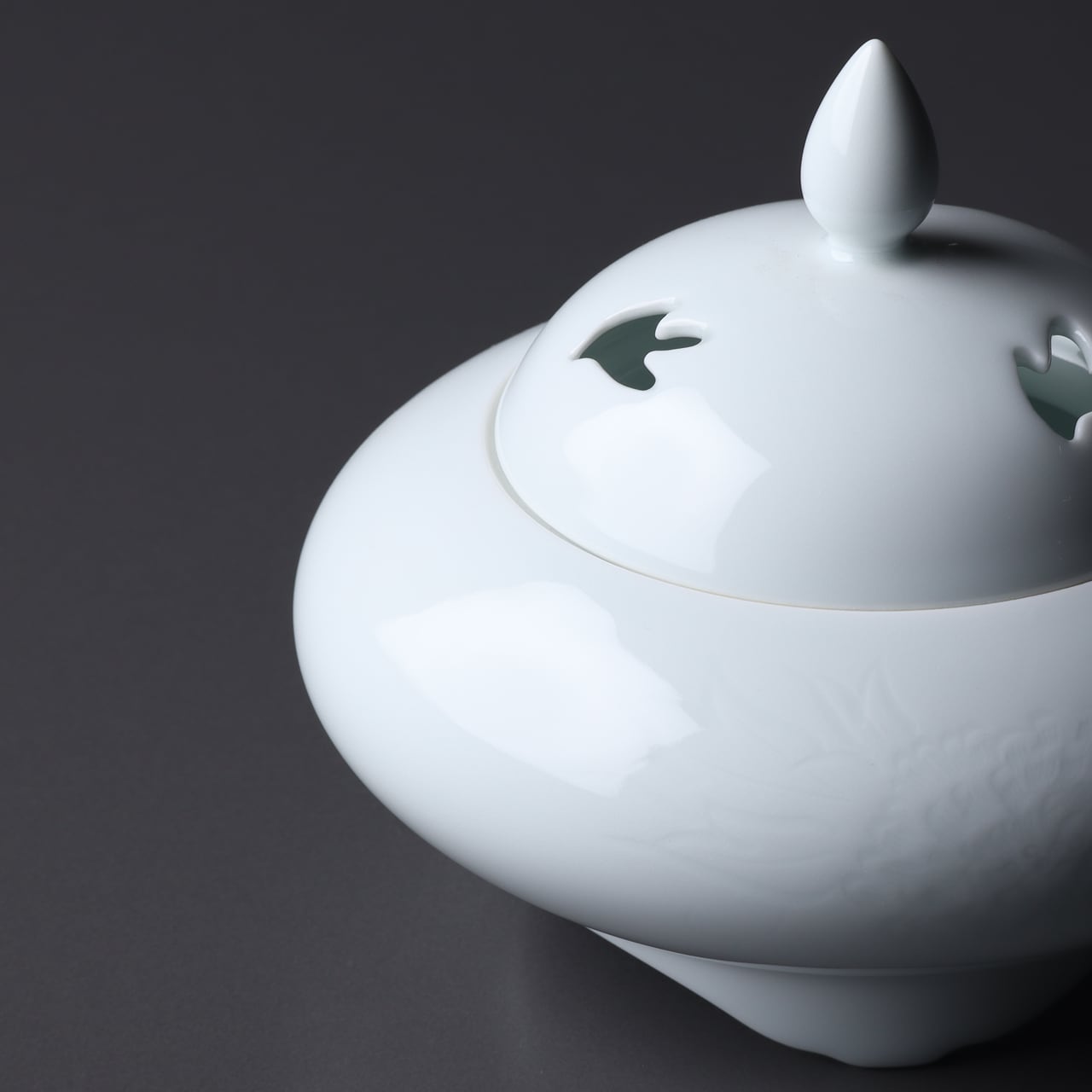 0206 白磁牡丹彫り香炉