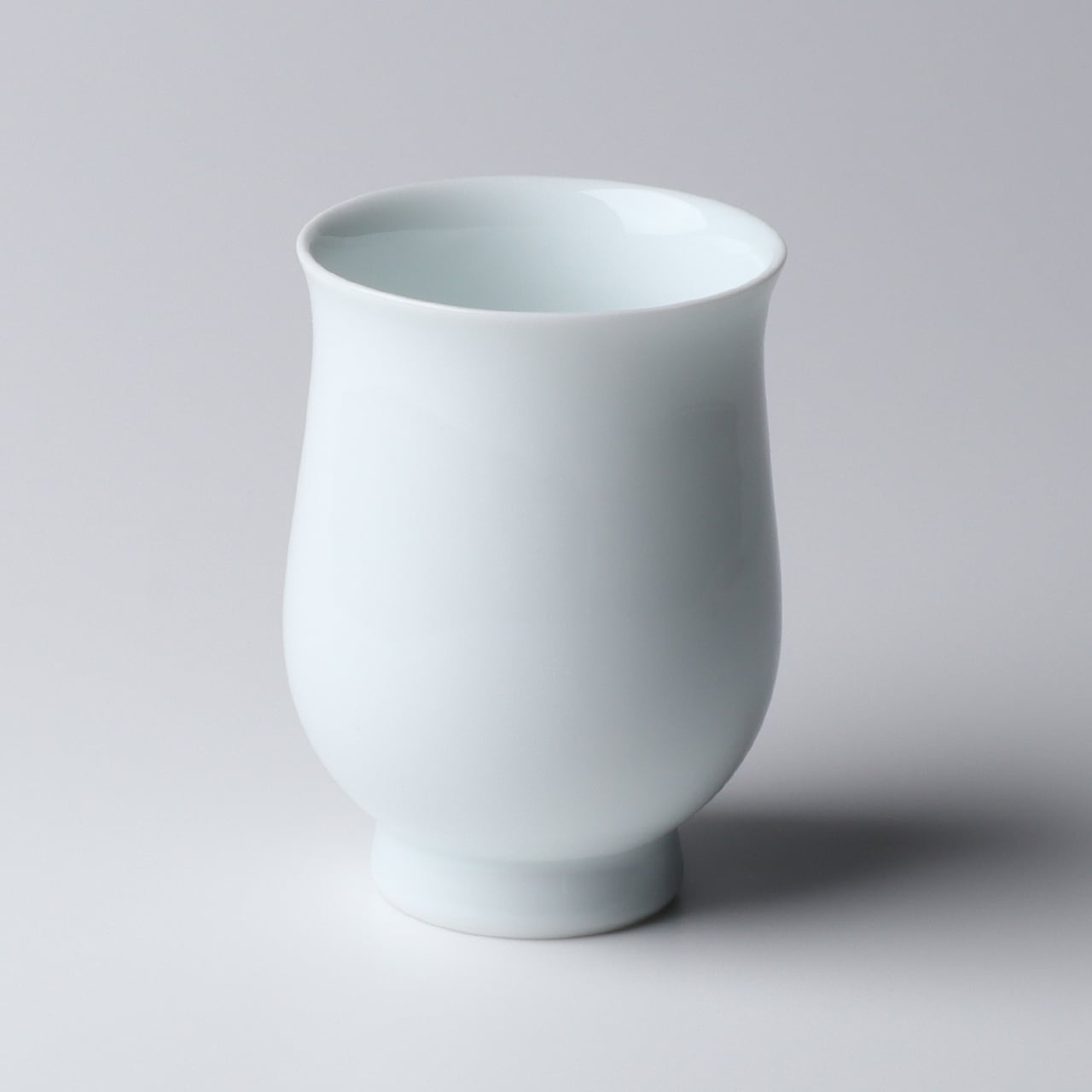 スッと手に持ちやすく、口当たりの良いお湯呑みです。特上の陶石を使用し、ろくろ成形ならではのしなやかさを感じていただけるのではないでしょうか。